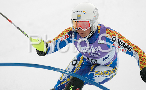 : Second placed Frida Hansdotter of Sweden skiing in second run of Women slalom race of Ofterschwang Audi FIS Ski World Cup 2008-09. Slalom race of Women Audi FIS Ski World Cup 2008-09 was held in Ofterschwang, Germany, on Saturday, 7th of March 2009.