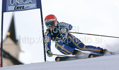 : Maria Pietilae-Holmner of Sweden skiing in first run of women giant slalom World Cup race in Lienz, Austra. Giant slalom race of Women Audi FIS Alpine skiing World Cup 2009-10 was held in Lienz, Slovenia, on 28th of December 2009.