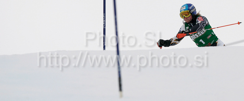 : Third after first run Tanja Poutiainen of Finland skiing in first run of women slalom World Cup race in Lienz, Austra. Slalom race of Women Audi FIS Alpine skiing World Cup 2009-10 was held in Lienz, Austria, on 29th of December 2009.