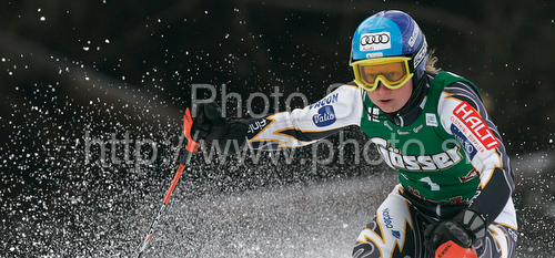 : Third after first run Tanja Poutiainen of Finland skiing in first run of women slalom World Cup race in Lienz, Austra. Slalom race of Women Audi FIS Alpine skiing World Cup 2009-10 was held in Lienz, Austria, on 29th of December 2009.