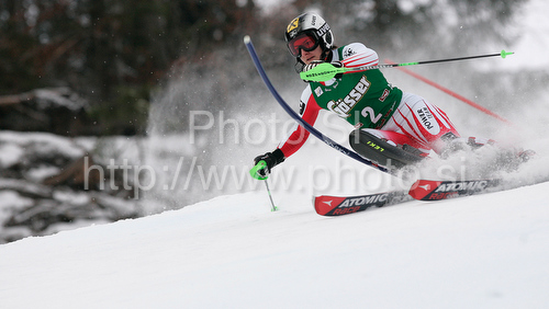 : Second after first run Kathrin Zettel of Austria skiing in first run of women slalom World Cup race in Lienz, Austra. Slalom race of Women Audi FIS Alpine skiing World Cup 2009-10 was held in Lienz, Austria, on 29th of December 2009.