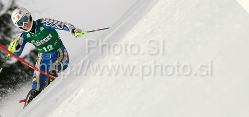 : Tenth after first run Maria Pietilae-Holmner of Sweden skiing in first run of women slalom World Cup race in Lienz, Austra. Slalom race of Women Audi FIS Alpine skiing World Cup 2009-10 was held in Lienz, Austria, on 29th of December 2009.