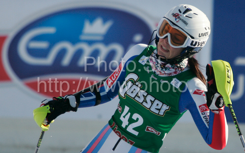 Lienz ,Austria - 29.12.2009 : Nastasia Noens of France reacts in finish of second run of women slalom World Cup race in Lienz, Austra. Slalom race of Women Audi FIS Alpine skiing World Cup 2009-10 was held in Lienz, Austria, on 29th of December 2009. Photo by: Primoz Jeroncic