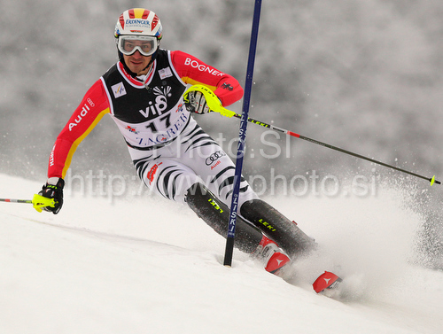 Zagreb ,Croatia - 06.01.2010 : Felix Neureuther of Germany skiing in first run of men Snow queen trophy slalom World Cup race in Zagreb, Croatia. Slalom race of Men Audi FIS Alpine skiing World Cup 2009-10 was held on Sljeme above Zagreb, Croatia, on 6th of January 2010. Photo by: Primoz Jeroncic