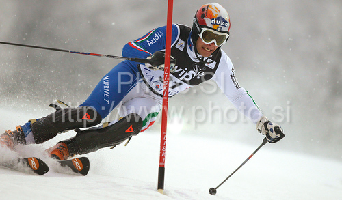 : Christof Innerhofer of Italy skiing in first run of men Snow queen trophy slalom World Cup race in Zagreb, Croatia. Slalom race of Men Audi FIS Alpine skiing World Cup 2009-10 was held on Sljeme above Zagreb, Croatia, on 6th of January 2010.
