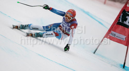: Sixth placed skiing during women downhill race of Audi FIS alpine skiing World Cup in Haus im Ennstal, Austria. Downhill race of Women Audi FIS Alpine skiing World Cup 2009-10 was held in Haus im Ennstal, Austria, on 9th of January 2010.