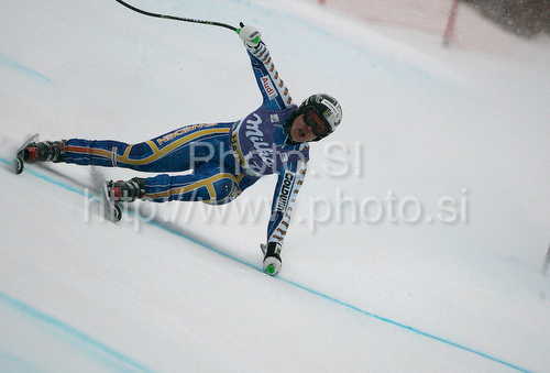 : Fifth placed Anja Paerson of Sweden skiing during women downhill race of Audi FIS alpine skiing World Cup in Haus im Ennstal, Austria. Downhill race of Women Audi FIS Alpine skiing World Cup 2009-10 was held in Haus im Ennstal, Austria, on 9th of January 2010.