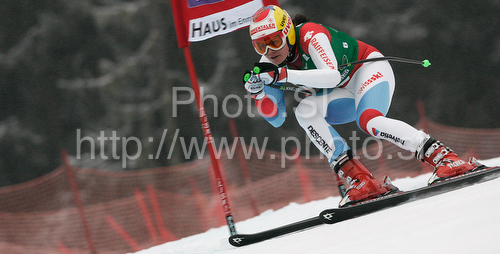 : Seventh placed Nadja Kamer of Switzerland skiing during women Super-G race of Audi FIS alpine skiing World Cup in Haus im Ennstal, Austria. Super-G race of Women Audi FIS Alpine skiing World Cup 2009-10 was held in Haus im Ennstal, Austria, on 10th of January 2010.