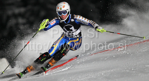 : Eight after first run Maria Pietilae-Holmner of Sweden skiing in first run of Women slalom race of Audi FIS alpine skiing World Cup in Flachau, Austria. Slalom race of Women Audi FIS Alpine skiing World Cup 2009-10 was held in Flachau, Austria, on 12th of January 2010.