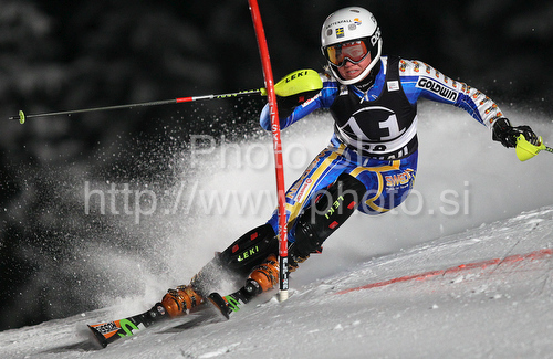 : Frida Hansdotter of Sweden skiing in first run of Women slalom race of Audi FIS alpine skiing World Cup in Flachau, Austria. Slalom race of Women Audi FIS Alpine skiing World Cup 2009-10 was held in Flachau, Austria, on 12th of January 2010.