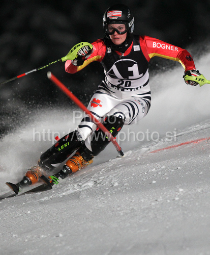 : Christina Geiger of Germany skiing in first run of Women slalom race of Audi FIS alpine skiing World Cup in Flachau, Austria. Slalom race of Women Audi FIS Alpine skiing World Cup 2009-10 was held in Flachau, Austria, on 12th of January 2010.