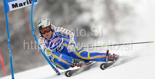 : Third after first run Anja Paerson of Sweden skiing in first run of Women giant slalom race of Audi FIS alpine skiing World Cup in Maribor, Slovenia. Giant slalom race of Women Audi FIS Alpine skiing World Cup 2009-10 was held in Maribor, Slovenia, on 16th of January 2010.