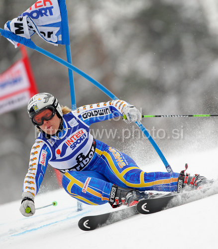 : Third after first run Anja Paerson of Sweden skiing in first run of Women giant slalom race of Audi FIS alpine skiing World Cup in Maribor, Slovenia. Giant slalom race of Women Audi FIS Alpine skiing World Cup 2009-10 was held in Maribor, Slovenia, on 16th of January 2010.