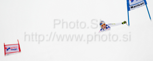 : Second after first run Lindsey Vonn of USA skiing in first run of Women giant slalom race of Audi FIS alpine skiing World Cup in Maribor, Slovenia. Giant slalom race of Women Audi FIS Alpine skiing World Cup 2009-10 was held in Maribor, Slovenia, on 16th of January 2010.