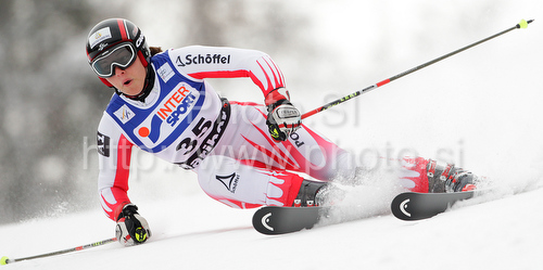 : Ramona Siebenhofer of Austria skiing in first run of Women giant slalom race of Audi FIS alpine skiing World Cup in Maribor, Slovenia. Giant slalom race of Women Audi FIS Alpine skiing World Cup 2009-10 was held in Maribor, Slovenia, on 16th of January 2010.