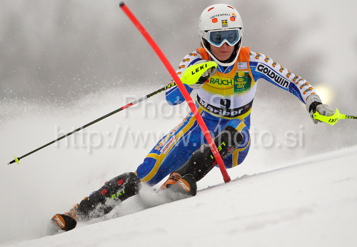 : Fourth after first run Maria Pietilae-Holmner of Sweden skiing in first run of Women slalom race of Audi FIS alpine skiing World Cup in Maribor, Slovenia. Slalom race of Women Audi FIS Alpine skiing World Cup 2009-10 was held in Maribor, Slovenia, on 17th of January 2010.