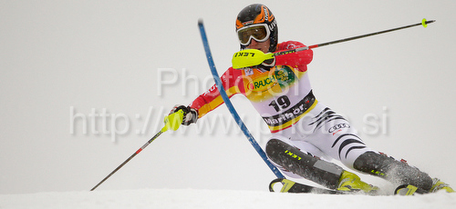 : Katharina Duerr of Germany skiing in first run of Women slalom race of Audi FIS alpine skiing World Cup in Maribor, Slovenia. Slalom race of Women Audi FIS Alpine skiing World Cup 2009-10 was held in Maribor, Slovenia, on 17th of January 2010.