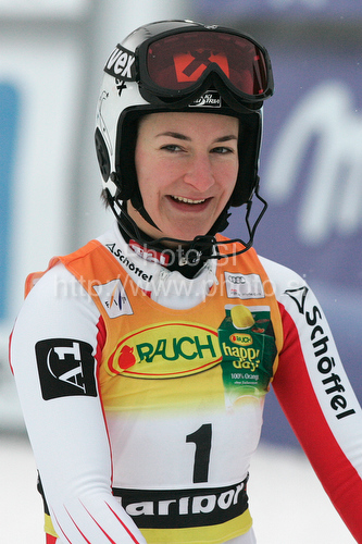 : Kathrin Zettel of Austria reacts in finish of first run of Women slalom race of Audi FIS alpine skiing World Cup in Maribor, Slovenia. Slalom race of Women Audi FIS Alpine skiing World Cup 2009-10 was held in Maribor, Slovenia, on 17th of January 2010.