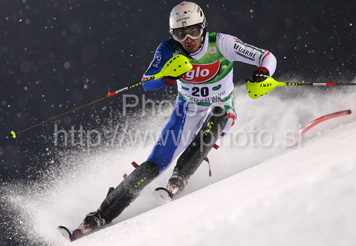 : Patrick Thaler of Italy skiing in first run of Men Night slalom race of Audi FIS alpine skiing World Cup in Schladming, Austria. Slalom race of Men Audi FIS Alpine skiing World Cup 2009-10 was held in Schladming, Austria, on 26th of January 2010.