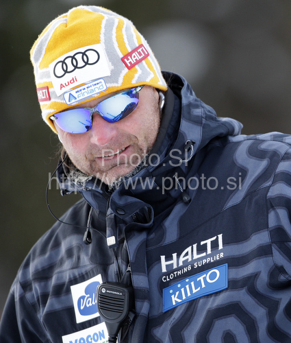 : Finnish coach Christian Leitner during first run of Men giant slalom race of Audi FIS alpine skiing World Cup in Kranjska Gora, Slovenia. Giant slalom race of Men Audi FIS Alpine skiing World Cup 2009-10, which substituted canceled giant slalom race from Adelboden, Switzerland, was held on Friday in Kranjska Gora, Slovenia, on 29th of January 2010.