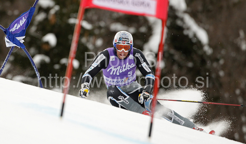: Leader after first run Aksel Lund Svindal of Norway skiing in first run of Men giant slalom race of Audi FIS alpine skiing World Cup in Kranjska Gora, Slovenia. Giant slalom race of Men Audi FIS Alpine skiing World Cup 2009-10, which substituted canceled giant slalom race from Adelboden, Switzerland, was held on Friday in Kranjska Gora, Slovenia, on 29th of January 2010.