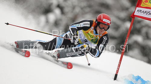 : Leader after first run Kjetil Jansrud of Norway skiing in first run of second Men giant slalom race of Audi FIS alpine skiing World Cup in Kranjska Gora, Slovenia. Second giant slalom race of Men Audi FIS Alpine skiing World Cup 2009-10, was held on Saturday in Kranjska Gora, Slovenia, on 30th of January 2010.