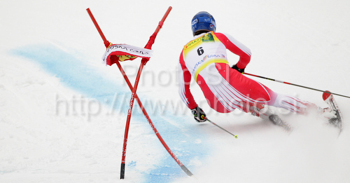 : Eight placed after first run Benjamin Raich of Austria skiing in first run of second Men giant slalom race of Audi FIS alpine skiing World Cup in Kranjska Gora, Slovenia. Second giant slalom race of Men Audi FIS Alpine skiing World Cup 2009-10, was held on Saturday in Kranjska Gora, Slovenia, on 30th of January 2010.
