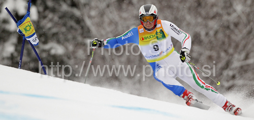 : Sixth placed after first run Alexander Ploner of Italy skiing in first run of second Men giant slalom race of Audi FIS alpine skiing World Cup in Kranjska Gora, Slovenia. Second giant slalom race of Men Audi FIS Alpine skiing World Cup 2009-10, was held on Saturday in Kranjska Gora, Slovenia, on 30th of January 2010.