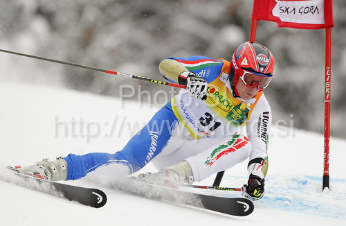 : Florian Eisath of Italy skiing in first run of second Men giant slalom race of Audi FIS alpine skiing World Cup in Kranjska Gora, Slovenia. Second giant slalom race of Men Audi FIS Alpine skiing World Cup 2009-10, was held on Saturday in Kranjska Gora, Slovenia, on 30th of January 2010.
