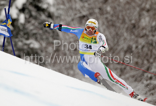 : Wolfgang Hell of Italy skiing in first run of second Men giant slalom race of Audi FIS alpine skiing World Cup in Kranjska Gora, Slovenia. Second giant slalom race of Men Audi FIS Alpine skiing World Cup 2009-10, was held on Saturday in Kranjska Gora, Slovenia, on 30th of January 2010.