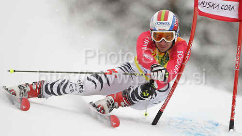 : Felix Neureuther of Germany skiing in first run of second Men giant slalom race of Audi FIS alpine skiing World Cup in Kranjska Gora, Slovenia. Second giant slalom race of Men Audi FIS Alpine skiing World Cup 2009-10, was held on Saturday in Kranjska Gora, Slovenia, on 30th of January 2010.
