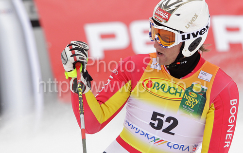 : Fritz Dopfer of Germany reacts in finish of second run of second Men giant slalom race of Audi FIS alpine skiing World Cup in Kranjska Gora, Slovenia. Second giant slalom race of Men Audi FIS Alpine skiing World Cup 2009-10, was held on Saturday in Kranjska Gora, Slovenia, on 30th of January 2010.