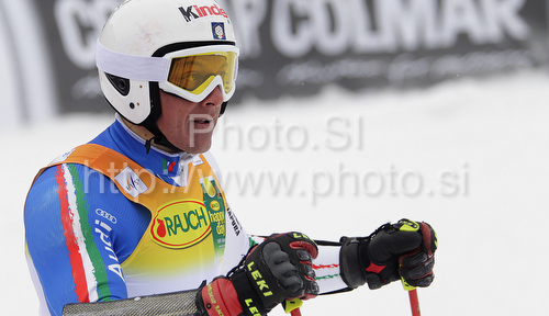 : Fourth placed Massimiliano Blardone of Italy reacts in finish of second run of second Men giant slalom race of Audi FIS alpine skiing World Cup in Kranjska Gora, Slovenia. Second giant slalom race of Men Audi FIS Alpine skiing World Cup 2009-10, was held on Saturday in Kranjska Gora, Slovenia, on 30th of January 2010.