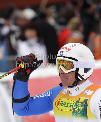 : Fourth placed Massimiliano Blardone of Italy reacts in finish of second run of second Men giant slalom race of Audi FIS alpine skiing World Cup in Kranjska Gora, Slovenia. Second giant slalom race of Men Audi FIS Alpine skiing World Cup 2009-10, was held on Saturday in Kranjska Gora, Slovenia, on 30th of January 2010.