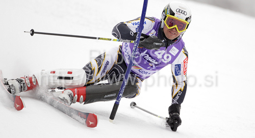 : Jukka Leino of Finland skiing in first run of Men slalom race of Audi FIS alpine skiing World Cup in Kranjska Gora, Slovenia. Slalom race of Men Audi FIS Alpine skiing World Cup 2009-10, was held on Sunday in Kranjska Gora, Slovenia, on 31st of January 2010.