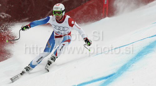 : Patrick Kueng of Switzerland skiing in last Men downhill race of Audi FIS alpine skiing World Cup, which was held on Kandahar downhill course in Garmisch-Partenkirchen, Germany. Last downhill race of Men Audi FIS Alpine skiing World Cup 2009-10, was held on Wednesday, 10th of March 2010 in Garmisch-Partenkirchen, Germany.