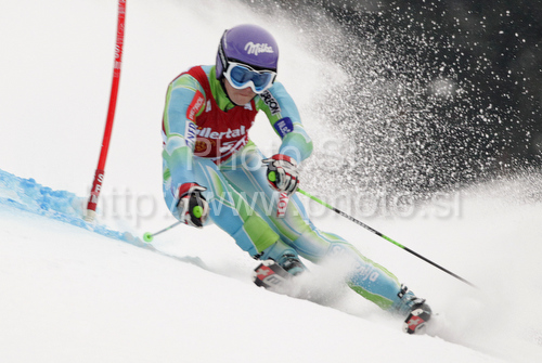 Garmisch-Partenkirchen ,Germany - 11.03.2010 : Second after first run Tina Maze of Slovenia skiing in first run of last Women Giant slalom race of Audi FIS alpine skiing World Cup, which was held on Kandahar course in Garmisch-Partenkirchen, Germany. Last Giant slalom race of Women Audi FIS Alpine skiing World Cup 2009-10, was held on Thursday, 11th of March 2010 in Garmisch-Partenkirchen, Germany. Photo by: Primoz Jeroncic