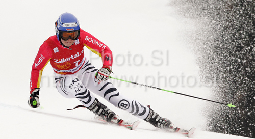 : Fourth placed after first run Viktoria Rebensburg of Germany skiing in first run of last Women Giant slalom race of Audi FIS alpine skiing World Cup, which was held on Kandahar course in Garmisch-Partenkirchen, Germany. Last Giant slalom race of Women Audi FIS Alpine skiing World Cup 2009-10, was held on Thursday, 11th of March 2010 in Garmisch-Partenkirchen, Germany.