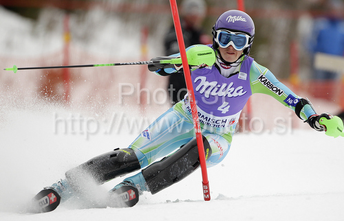 : Tina Maze of Slovenia skiing in first run of last Women slalom race of Audi FIS alpine skiing World Cup, which was held on Gudiberg course in Garmisch-Partenkirchen, Germany. Last slalom race of Women Audi FIS Alpine skiing World Cup 2009-10, was held on Saturday, 13th of March 2010 in Garmisch-Partenkirchen, Germany.