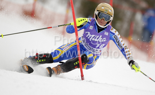: Maria Pietilae-Holmner of Sweden skiing in first run of last Women slalom race of Audi FIS alpine skiing World Cup, which was held on Gudiberg course in Garmisch-Partenkirchen, Germany. Last slalom race of Women Audi FIS Alpine skiing World Cup 2009-10, was held on Saturday, 13th of March 2010 in Garmisch-Partenkirchen, Germany.