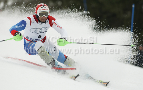 Garmisch-Partenkirchen ,Germany - 13.03.2010 : Silvan Zurbriggen of Switzerland skiing in second run of last Men slalom race of Audi FIS alpine skiing World Cup, which was held on Gudiberg course in Garmisch-Partenkirchen, Germany. Last slalom race of Men Audi FIS Alpine skiing World Cup 2009-10, was held on Saturday, 13th of March 2010 in Garmisch-Partenkirchen, Germany. Photo by: Tomaz Jeroncic