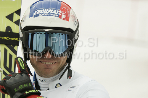 : Manfred Moelgg of Italy reacts in finish of team race of Audi FIS alpine skiing World Cup, which was held on Kandahar course in Garmisch-Partenkirchen, Germany. Team race of Audi FIS Alpine skiing World Cup 2009-10, was held on Sunday, 14th of March 2010 in Garmisch-Partenkirchen, Germany.
