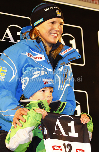 : Anja Paerson of Sweden during bib draw for Audi FIS Alpine skiing giant slalom race in Soelden, Austria. Bib draw for women Audi FIS Alpine skiing giant slalom race was held in Soelden, Austria, on Friday, 22nd of October 2010.