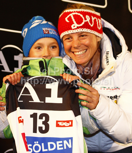 : Denise Karbon of Italy during bib draw for Audi FIS Alpine skiing giant slalom race in Soelden, Austria. Bib draw for women Audi FIS Alpine skiing giant slalom race was held in Soelden, Austria, on Friday, 22nd of October 2010.