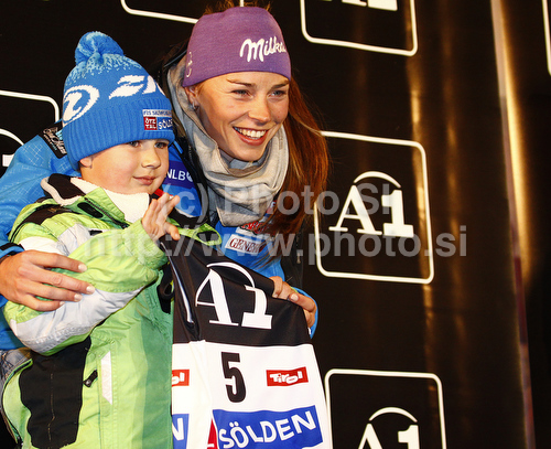 : Tina Maze of Slovenia during bib draw for Audi FIS Alpine skiing giant slalom race in Soelden, Austria. Bib draw for women Audi FIS Alpine skiing giant slalom race was held in Soelden, Austria, on Friday, 22nd of October 2010.