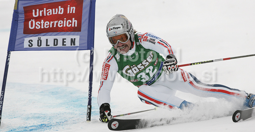 : Julien Lizeroux of France skiing in first run of Men giant slalom race of Audi FIS alpine skiing World Cup in Soelden, Austria. First giant slalom race of Men Audi FIS Alpine skiing World Cup 2010-11, was held on Sunday, 24th of October 2010, on Rettenbach glacier above Soelden, Austria.