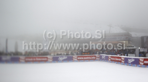 : Finish of second run is in fog, and Men giant slalom race of Audi FIS alpine skiing World Cup in Soelden, Austria is being postponed. First giant slalom race of Men Audi FIS Alpine skiing World Cup 2010-11, was held on Sunday, 24th of October 2010, on Rettenbach glacier above Soelden, Austria.
