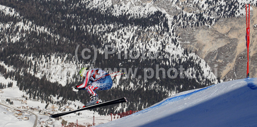 : Bode Miller of USA skiing in second training of Men downhill race of Audi FIS alpine skiing World Cup in Val Gardena, Italy. Second training of downhill race of Men Audi FIS Alpine skiing World Cup 2010-11, was held on Thursday, 16th of December 2010, on Saslong course in Val Gardena, Italy.