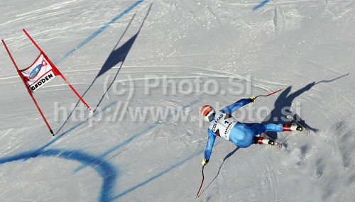 : Patrik Jaerbyn of Sweden skiing in second training of Men downhill race of Audi FIS alpine skiing World Cup in Val Gardena, Italy. Second training of downhill race of Men Audi FIS Alpine skiing World Cup 2010-11, was held on Thursday, 16th of December 2010, on Saslong course in Val Gardena, Italy.