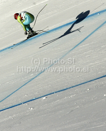 : Andrej Sporn of Slovenia skiing in second training of Men downhill race of Audi FIS alpine skiing World Cup in Val Gardena, Italy. Second training of downhill race of Men Audi FIS Alpine skiing World Cup 2010-11, was held on Thursday, 16th of December 2010, on Saslong course in Val Gardena, Italy.